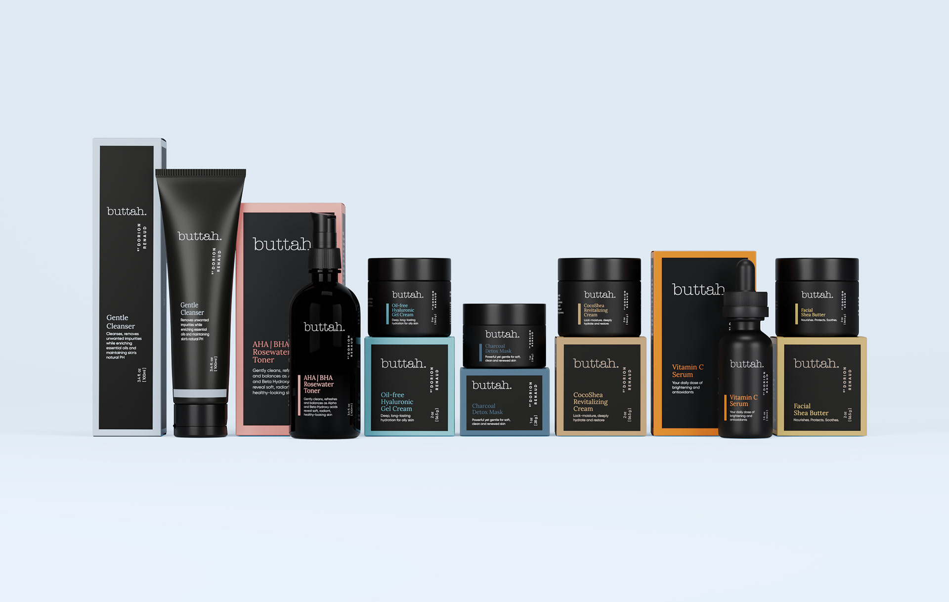 Renders of the entire product line were created for the launch of the new secondary packaging design.